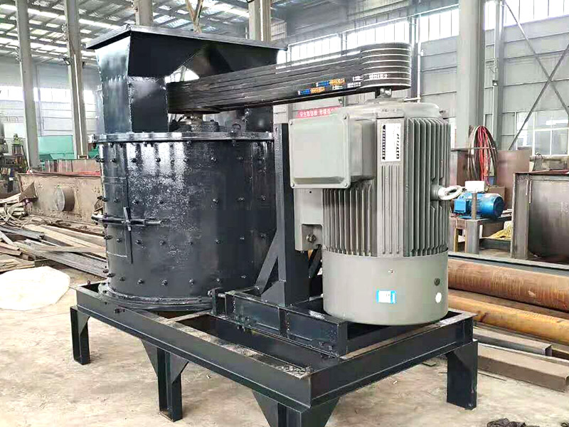 物料由機(jī)器上部垂直落入高速旋轉(zhuǎn)的葉輪內(nèi),在高速離心力的作用下,與另一部分以傘狀形式分流在破碎機(jī)葉輪四周的物料產(chǎn)生高速撞擊,物料在相互撞擊后,又會(huì)在葉輪和機(jī)殼之間以物料形成的渦流中多次碰撞、摩擦而粉碎,從下部直接排出,形成多次閉路循環(huán),由篩分設(shè)備來控制所要求的成品粒度。